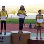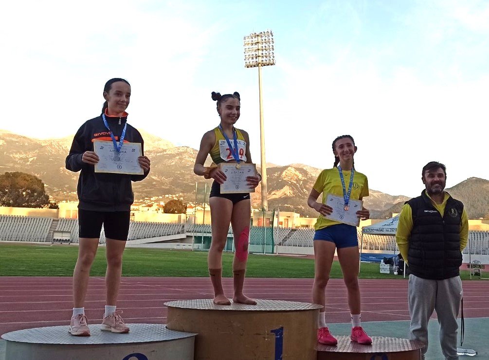 Ένα χρυσό με την Ανδριάνα Μπούρη, ένα ασημένιο με την Κατερίνα Μπίκου και ένα χάλκινο μετάλλιο με τη Ραφαηλία Καραγκούνια ήταν ο απολογισμός του Αθηνόδωρου Αιγίου στα διασυλλογικά πρωταθλήματα Κ-12 και Κ-14 που έγιναν το Σάββατο στο Παμπελοποννησιακό Στάδιο της Πάτρας.