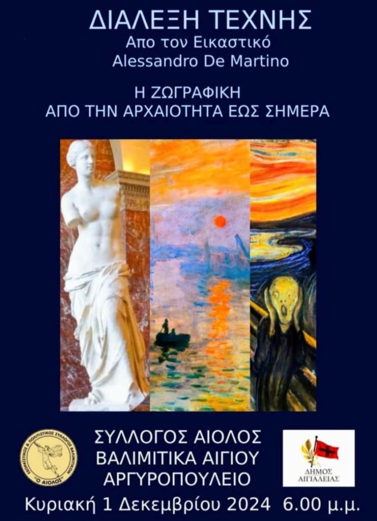 Στις λογικές αυτές ερωτήσεις θα δοθούν απαντήσεις από τον εικαστικό Alessandro DeMartino την Κυριακή 1η Δεκεμβρίου, στις 6μ.μ., στο χώρο του Πνευματικού Κέντρου «Αργυροπούλειο» στα Βαλιμίτικα, στη διάλεξη τέχνης και πολιτισμού.