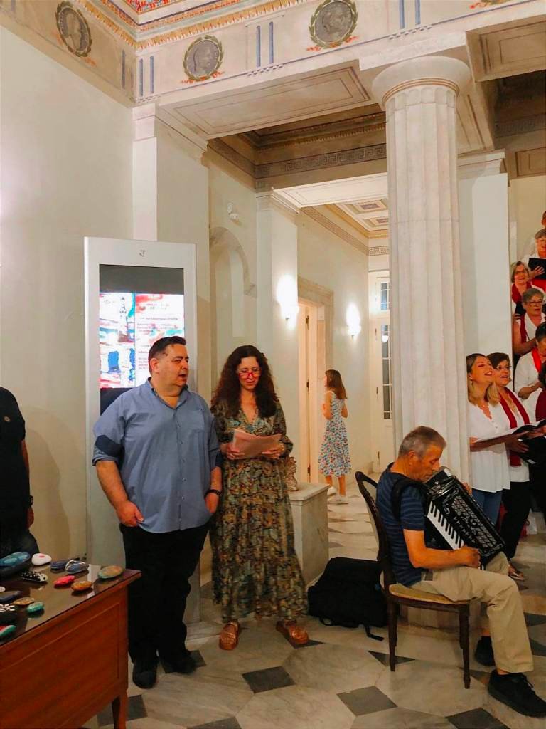 Τη βραδιά εμπλούτισε μελωδικά η μαέστρος Μπέσσυ Νάσση με το πιάνο της, ο συνοδός ταλαντούχος ακορντεονίστας και η Λαϊκή Χορωδία του Δήμου Αιγιαλείας με τραγούδια γεμάτα εικόνες και συναισθήματα.