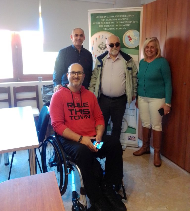 Σε σεμινάριο επιμόρφωσης στελεχών και εργαζομένων των ατόμων με αναπηρία με θέμα «Δίκτυο Καταγραφής και Αντιμετώπισης Περιστατικών Άνισης Μεταχείρισης», που πραγματοποιήθηκε το τριήμερο 17-19 Μαρτίου στην Αρχαία Ολυμπία, συμμετείχαν ο Πρόεδρος και η Αντιπρόεδρος του Διοικητικού Συμβουλίου του Ε.ΚΑ.ΜΕ./ΑμεΑ Αιγίου Γιώργος Γκιώνης και Μαρία Αλεξανδροπούλου.