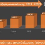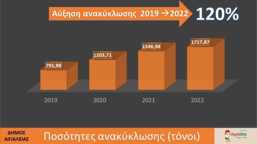 Ειδικότερα, σύμφωνα με τα επίσημα αποτελέσματα της Ελληνικής Εταιρείας Αξιοποίησης Ανακύκλωσης, το 2019 (Σεπτέμβριος – Δεκέμβριος), ανακυκλώθηκαν 791,98 τόνοι με 55% καθαρό ανακυκλώσιμο, το 2020 ανακυκλώθηκαν 1.203,71 τόνοι αλλά πλέον με 99,6% καθαρό ανακυκλώσιμο, το 2021 ανακυκλώθηκαν 1.546,98 τόνοι με 99,5% καθαρό ανακυκλώσιμο και το 2022 η ανακύκλωση έφτασε στους 1.717,87 τόνους με 99,7% καθαρό ανακυκλώσιμο. Από τους πρώτους δε μήνες του 2023 φαίνεται ήδη επιπλέον αυξητική τάση.
