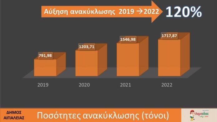 Η Αντιδημαρχία Καθαριότητας του Δήμου Αιγιαλείας, μετά από επίμονη προσπάθεια, παρουσιάζει τα αποτελέσματα του ποσοστού ανακύκλωσης συσκευασιών, σε σύγκριση με το φθινόπωρο του 2019 οπότε η σημερινή δημοτική αρχή ανέλαβε τα ηνία του Δήμου Αιγιαλείας και ειδικότερα του δύσκολου και ευαίσθητου τομέα της διαχείρισης των αποβλήτων.