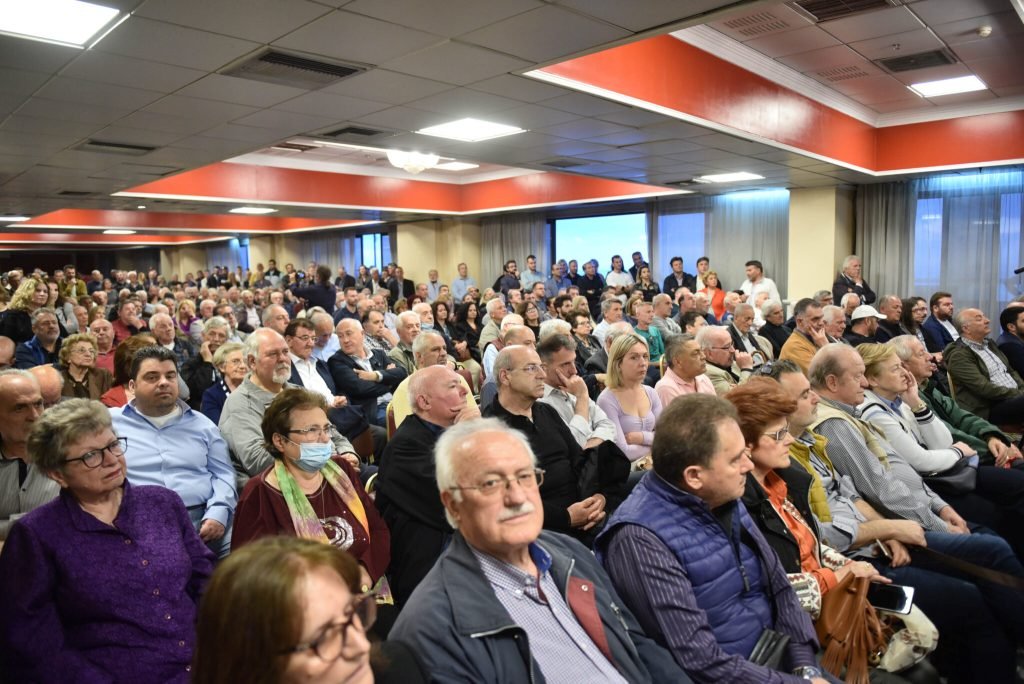 Ένα πολυπληθές ακροατήριο, που δεν μπόρεσε να χωρέσει στην αίθουσα, τον υποδέχθηκε θερμά και τον άκουσε να αναπτύσσει ένα πλήρες πολιτικό σκεπτικό για την εκλογική αναμέτρηση της Κυριακής.
