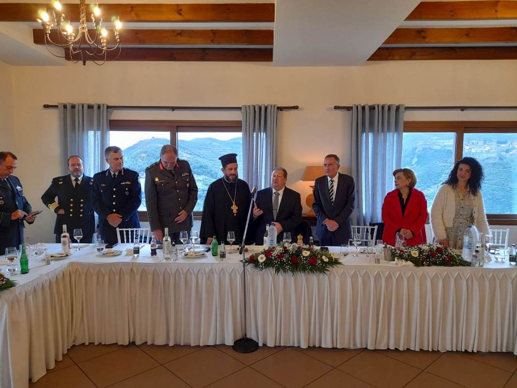 Μετά το πέρας της Δοξολογίας πραγματοποιήθηκε κατάθεση στεφάνων στο Ηρώο του Δημοτικού Κήπου Υψηλών Αλωνίων και ακολούθησε η παράθεση επίσημου γεύματος για τους προσκεκλημένους στο «Λιόπετρο».