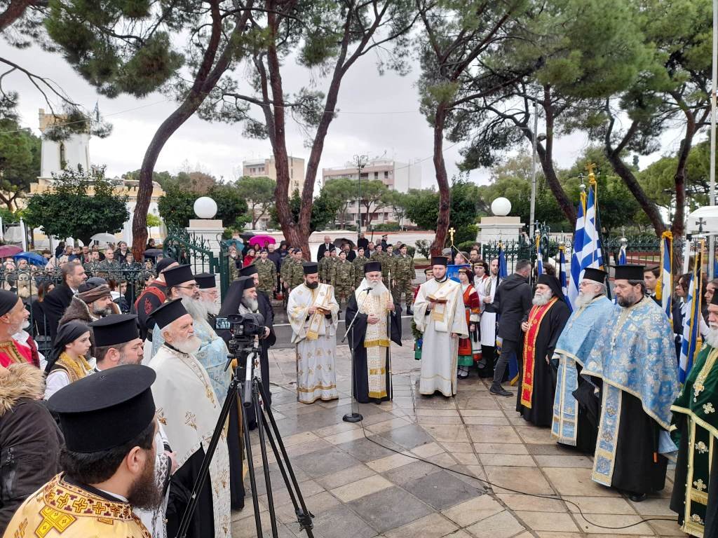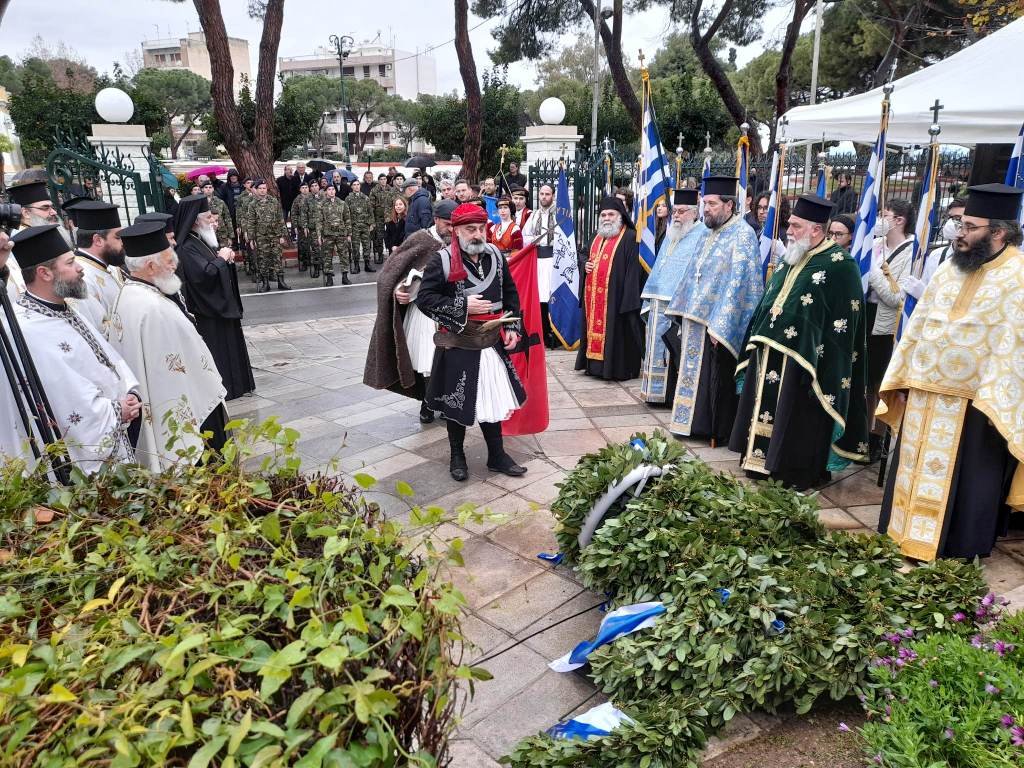 Δυστυχώς, η έντονη κακοκαιρία δεν επέτρεψε τη διεξαγωγή της προγραμματισμένης μαθητικής παρέλασης κι έτσι εψάλη η Δοξολογία στον Καθεδρικό Ναό του Αιγίου, χοροστατούντος του Μητροπολίτη Καλαβρύτων και Αιγιαλείας κ. Ιερωνύμου και ακολούθησαν ο πανηγυρικός της ημέρας από τον αντιπεριφερειάρχη Περιφέρειας Δυτικής Ελλάδας και εκπρόσωπο του Ομίλου Απογόνων Αγωνιστών του 1821 Φωκίωνα Ζαΐμη και οι χαιρετισμοί του υφυπουργού Εξωτερικών Ανδρέα Κατσανιώτη, του αντιπεριφερειάρχη Π.Ε. Αχαΐας Χαράλαμπου Μπονάνου, του προέδρου της Περιφερειακής Ένωσης Δήμων Δυτικής Ελλάδας και δημάρχου Καλαβρύτων Θανάση Παπαδόπουλου και του Δημάρχου Αιγιαλείας.