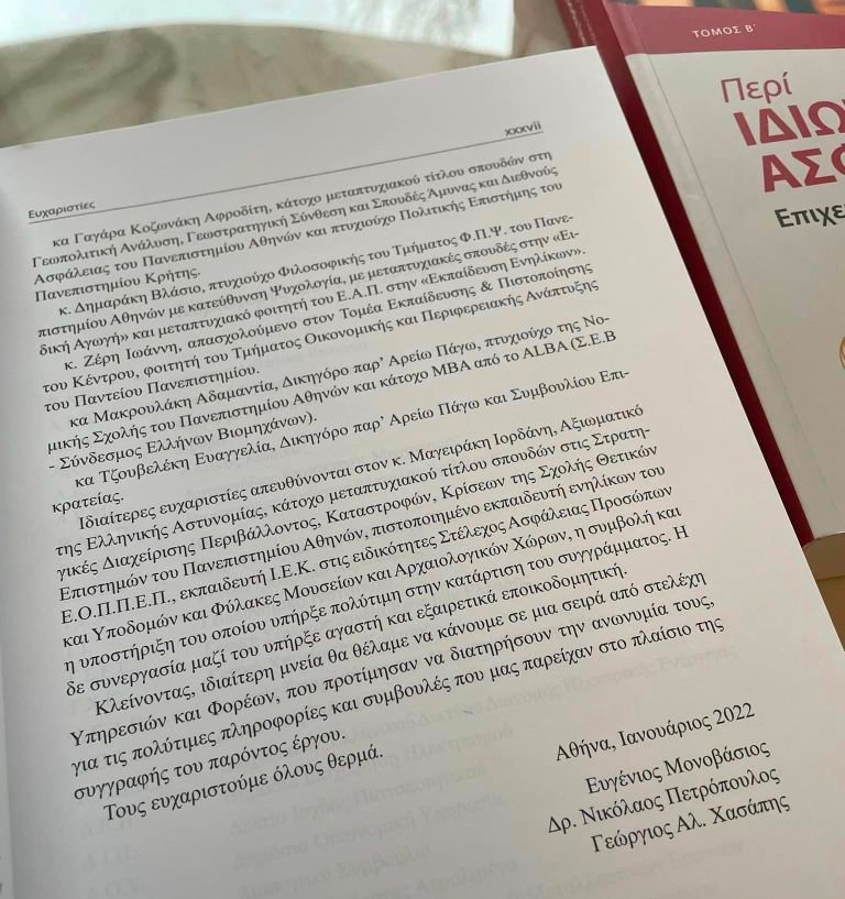 Το γεγονός γνωστοποίησε ο ίδιος στον προσωπικό του λογαριασμό στο Facebook, επιθυμώντας να ευχαριστήσει τον Υπουργό Προστασίας του Πολίτη Τάκη Θεοδωρικάκο για την εμπιστοσύνη στο πρόσωπό του αλλά και την επιστημονική επιτροπή (Ευγένιος Μονοβάσιος, Νικόλαος Πετρόπουλος, Γεώργιος Χασάπης) για την εξαιρετική συνεργασία που ανέπτυξαν, προκειμένου ο χώρος της Ιδιωτικής Ασφάλειας στην Ελλάδα να έχει ένα συγγραφικό έργο περί των 1.500 σελίδων που θα αποτελεί οδηγό στην επιτέλεση των καθηκόντων τους.