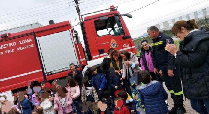 Μία διαφορετικού τύπου επίσκεψη δέχθηκαν το πρωί της Τρίτης 21 Μαρτίου τα παιδιά του 4ου Νηπιαγωγείου Αιγίου! Πιο συγκεκριμένα, στο προαύλιο του σχολείου βρέθηκε κλιμάκιο της Πυροσβεστικής Υπηρεσίας Αιγίου, που αποτελείτο από δύο άνδρες και μία γυναίκα μαζί με πυροσβεστικό όχημα, μία ενέργεια που έγινε στο πλαίσιο των Εργαστηρίων Δεξιοτήτων και Δραστηριοτήτων που υλοποιούνται από το Νηπιαγωγείο για την προστασία του δάσους.