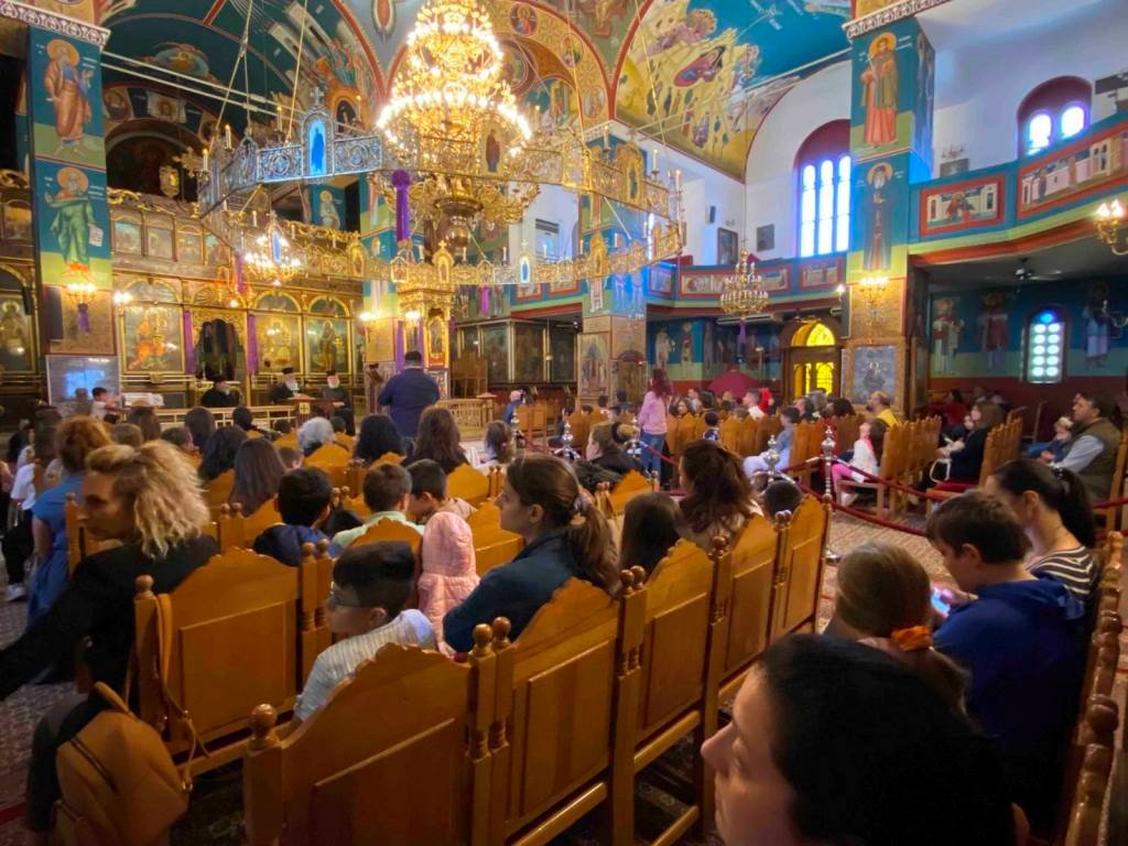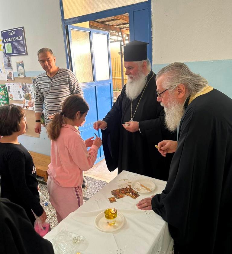 Τέλος, επαίνεσε τα παιδιά για την αγάπη τους στον Χριστό, καθώς και την πρόοδό τους στο σχολείο και κατά το πέρας της Συνάξεως, τους προσέφερε ως ευλογία μία λαμπάδα για την Ανάσταση, τονίζοντας ότι, ανάβοντάς την το βράδυ της Ανάστασης, η σκέψη όλων οφείλει να είναι, επίσης, στους γονείς και ιδίως στις μητέρες των αδικοχαμένων παιδιών στα Τέμπη, ενώ κάλεσε όλους να προσευχηθούν, ώστε ο Αναστάς Κύριος να παρηγορήσει τις πονεμένες καρδιές τους.