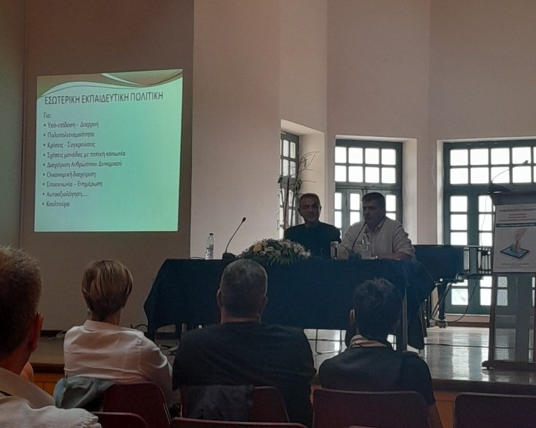 Η ενδιαφέρουσα εισήγηση του κ. Κουτούζη προσέγγισε θέματα που άπτονται της λειτουργίας ενός εκπαιδευτικού οργανισμού, όπως στοχοθεσία – αποτελεσματικότητα – αποδοτικότητα – διοίκηση – ηγεσία – κεντρική εξουσία – σχετική αυτονομία σχολικών μονάδων – αξιολόγηση – λογοδοσία – κουλτούρα συλλόγου διδασκόντων σχολικής μονάδας – στάση συλλόγου γονέων και κηδεμόνων. Όλα τα παραπάνω κράτησαν αμείωτο το ενδιαφέρον των ακροατών και προκάλεσαν ερωτήματα που οδήγησαν σε θέσεις, αντιθέσεις, γόνιμο διάλογο, εποικοδομητικές διαφωνίες και μια κοινή διαπίστωση ότι πρέπει όλοι οι εμπλεκόμενοι φορείς να συμβάλλουν προκειμένου να μετατραπούν τα σχολεία σε οργανισμούς μάθησης, δηλ. οργανισμούς που θα ενθαρρύνουν και θα δημιουργούν ευκαιρίες αναζήτησης, διαλόγου, συνεργασίας με σκοπό ένα κοινό όραμα και εντέλει σύνδεσης του εκπαιδευτικού οργανισμού με το περιβάλλον.