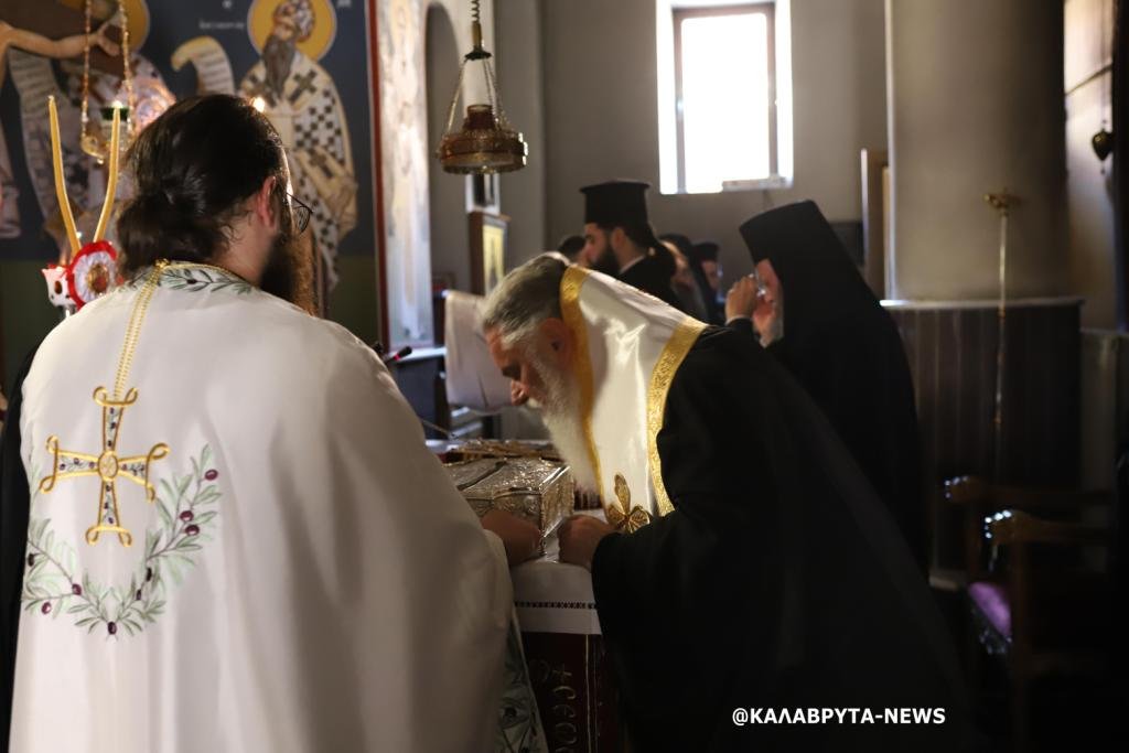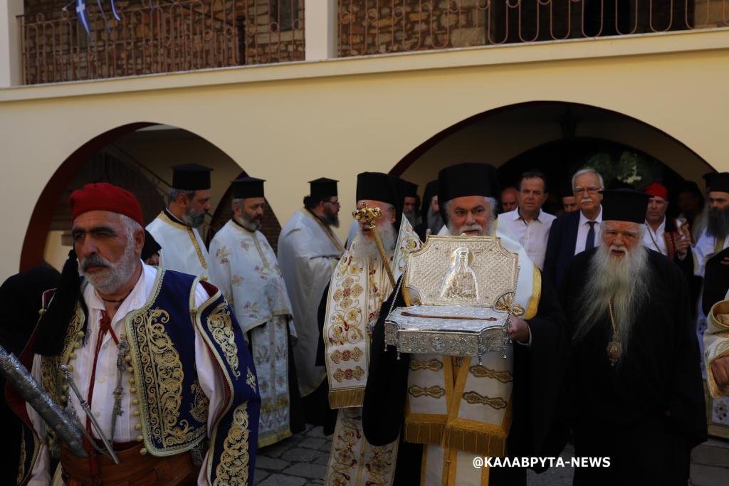 Με ιδιαίτερη ευλάβεια, επισημότητα, εκκλησιαστική τάξη και ιεροπρέπεια πραγματοποιήθηκε το Σάββατο 3 Αυγούστου στην ιστορική Ιερά Μονή Αγίας Λαύρας η υποδοχή αποτμήματος εκ του ιερού λειψάνου του Οσίου Αθανασίου Χαμακιώτου του Αγιολαυριώτου. Το λείψανο κόμισε στην Ιερά Μονή προς διηνεκή ευλογία του λαού της Ιεράς Μητροπόλεως ο Μητροπολίτης Κηφισίας, Αμαρουσίου, Ωρωπού και Μαραθώνος κ. Κύριλλος, ενώ το υπεδέχθη ο Μητροπολίτης Καλαβρύτων και Αιγιαλείας κ. Ιερώνυμος, παρουσία του Γέροντος Μητροπολίτου κ. Αμβροσίου. Το ιερό λείψανο συνόδευσαν έως το Καθολικό της Μονής ο Καθηγούμενος της Ιεράς Μονής Αρχιμανδρίτης π. Ευσέβιος Σπανός, ο ευσεβής κλήρος, πλειάδα μοναχών και μοναζουσών της Ιεράς Μητροπόλεως, ο Δήμαρχος Καλαβρύτων Αθανάσιος Παπαδόπουλος και πλήθος ευσεβών πιστών, που προσήλθαν για να λάβουν την ευλογία του Οσίου. Ακολούθησε ο πανηγυρικός Εσπερινός, χοροστατούντος του Μητροπολίτου κ. Κυρίλλου και συγχοροστατούντων του Γέροντος κ. Αμβροσίου και του κ. Ιερωνύμου.