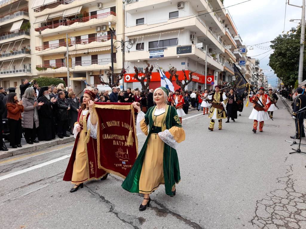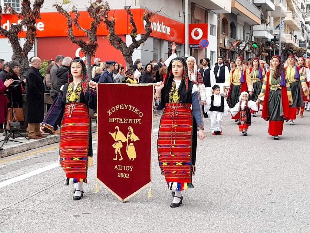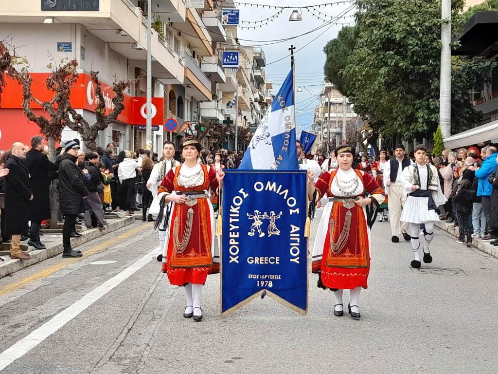 Λίγο πριν τις 12.30μ.μ. ξεκίνησε η παρέλαση των Συλλόγων Αναβιωτών, υπό τους ήχους της Φιλαρμονικής Αιγίου, οι οποίοι κέρδισαν το ζεστό χειροκρότημα του κόσμου, που, παρά τις άσχημες καιρικές συνθήκες, γέμισε τα πεζοδρόμια της οδού Μητροπόλεως για να απολαύσει ένα μοναδικό ομολογουμένως θέαμα, συμμετέχοντας έτσι ενεργά στις φετινές εορταστικές εκδηλώσεις.