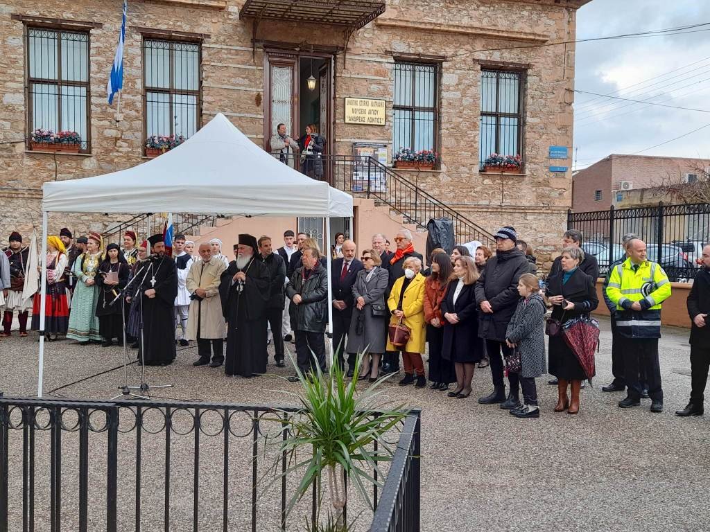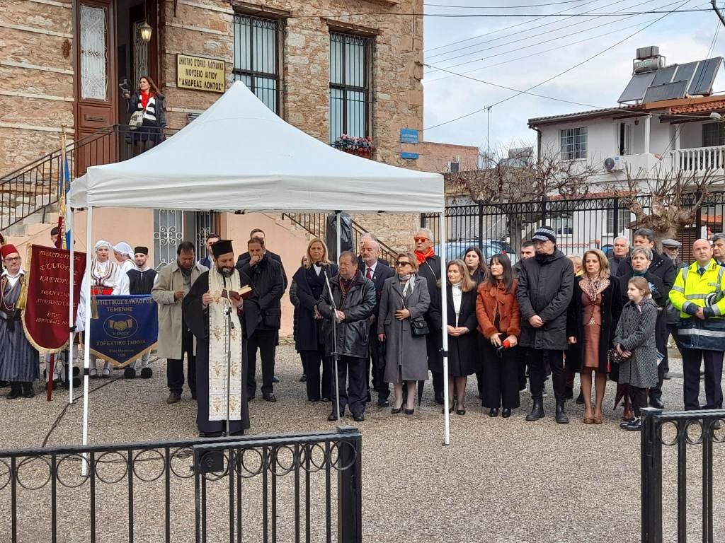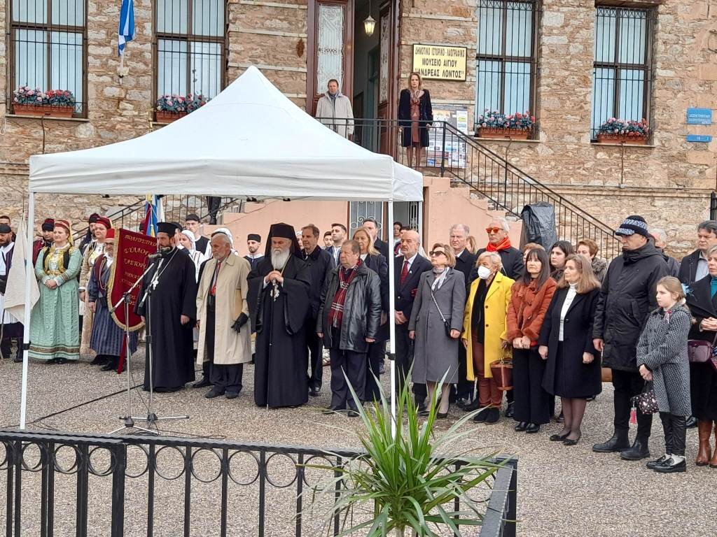 Νωρίτερα, χοροστατούντος του Σεβασμιωτάτου Μητροπολίτη Καλαβρύτων και Αιγιαλείας κ. Ιερωνύμου, εψάλη επιμνημόσυνη δέηση στον προαύλιο χώρο του Ιστορικού Λαογραφικού Μουσείου Αιγίου και ακολούθησε κατάθεση στεφάνων στην προτομή του Ανδρέα Λόντου από τον δήμαρχο Δημήτρη Καλογερόπουλο και τους εκπροσώπους των Αρχών και των φορέων της Αιγιάλειας αλλά και των Συλλόγων Αναβιωτών, αρκετοί εκ των οποίων ταξίδεψαν από μακρινά σημεία της Ελλάδας για να τιμήσουν τη φετινή επέτειο.
