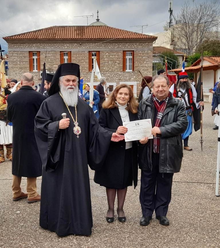Στη συνέχεια, ο δήμαρχος Αιγιαλείας, εφαρμόζοντας την υπ’ αριθ. 7/2023 απόφαση του Δ.Σ. του ΝΠΔΔ δήμου Αιγιαλείας, απένειμε στην Ευανθία (Βάνα) Μπεντεβή τον τιμητικό τίτλο της Επίτιμης Προέδρου του Δημοτικού Ιστορικού – Λαογραφικού Μουσείου Αιγίου «Ανδρέας Λόντος». Ο κ. Καλογερόπουλος, αφού πρώτα ανέγνωσε τη σχετική απόφαση, ανέφερε ότι ο δήμος Αιγιαλείας προέβη σε αυτή την πρωτοβουλία – κίνηση ως ένδειξη τιμής και αναγνώρισης του υψίστης σημασίας έργου της κ. Μπεντεβή, το οποίο (όπως είπε χαρακτηριστικά) αποτελεί εστία Πολιτισμού για την πόλη του Αιγίου αναδεικνύοντας την ιστορία της. «Η απονομή του τίτλου αυτού είναι μια μικρή ηθική επιβράβευση του μακροχρόνιου αγώνα της Ευανθίας Μπεντεβή για την ίδρυση και λειτουργία του Δημοτικού Ιστορικού Λαογραφικού Μουσείου. Ένα Μουσείο, για τη λειτουργία και την αναγνώριση του οποίου η ίδια έχει αφιερώσει, και συνεχίζει να το κάνει, ένα μεγάλο μέρος της ζωής της!», τόνισε ο δήμαρχος Αιγιαλείας.