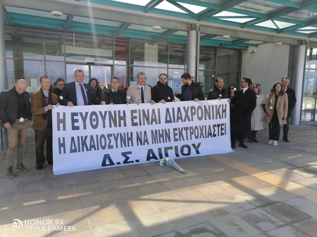 Στις σημερινές απεργιακές κινητοποιήσεις συμμετείχαν μεταξύ άλλων ο Δικηγορικός Σύλλογος και ο Σύλλογος Δικαστικών Υπαλλήλων Αιγίου, μέλη των οποίων μετέβησαν στον σιδηροδρομικό σταθμό της πόλης για να τιμήσουν τους αδικοχαμένους συνανθρώπους μας και δίνοντας την υπόσχεση πως θα συμβάλλουν με το θεσμικό τους ρόλο να αποδοθεί Δικαιοσύνη, σε όποιον ευθύνεται, όσο ψηλά και αν ευρίσκεται.