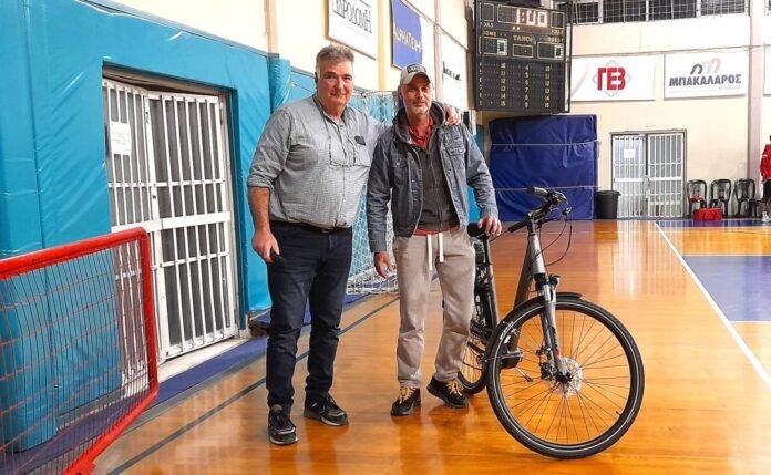 Ο Ανδρέας Σταυρόπουλος ήταν ο μεγάλος τυχερός στην κλήρωση της λαχειοφόρου του Α.Ο. Αιγιαλέων και στην ανάπαυλα ανάμεσα στο πρώτο και το δεύτερο σετ του προχθεσινού αγώνα με τον Πανερυθραϊκό παρέλαβε από τον Νίκο Ηλιόπουλο το ηλεκτρικό ποδήλατο IDEAL, αξίας 2.000 ευρώ.