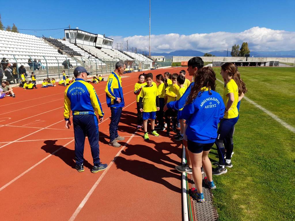 Από χαρούμενες παιδικές φωνές… «πλημμύρισε» σήμερα το πρωί και για δύο περίπου ώρες το δημοτικό στάδιο Αιγίου!  Αιτία; Οι καθιερωμένοι (τα τελευταία χρόνια) αγώνες αντοχής που διοργάνωσαν τα μέλη του συλλόγου «Αθηνόδωρος ο Αιγιεύς» για τους αθλητές και αθλήτριες των Ακαδημιών του (από προνήπια μέχρι και Α’ γυμνασίου).