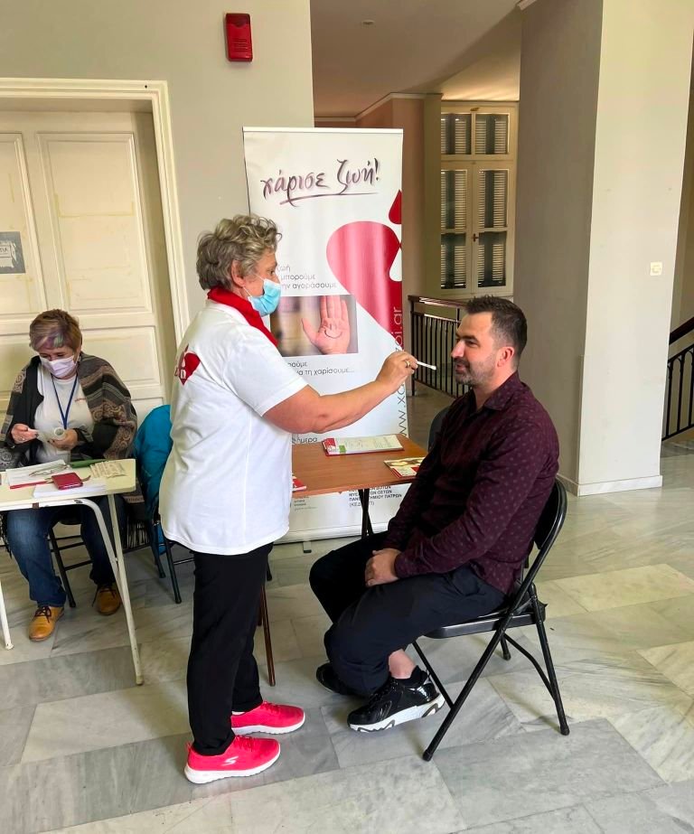 Παράλληλα πραγματοποιήθηκε εθελοντική αιμοδοσία καθώς και δειγματοληψία σάλιου για όσους επιθυμούσαν να εγγραφούν ως εθελοντές δότες μυελού των οστών σε συνεργασία με εθελόντριες του κέντρου ΚΕΔΜΟΠ – «Χάρισε ζωή» του Πανεπιστημίου Πατρών.