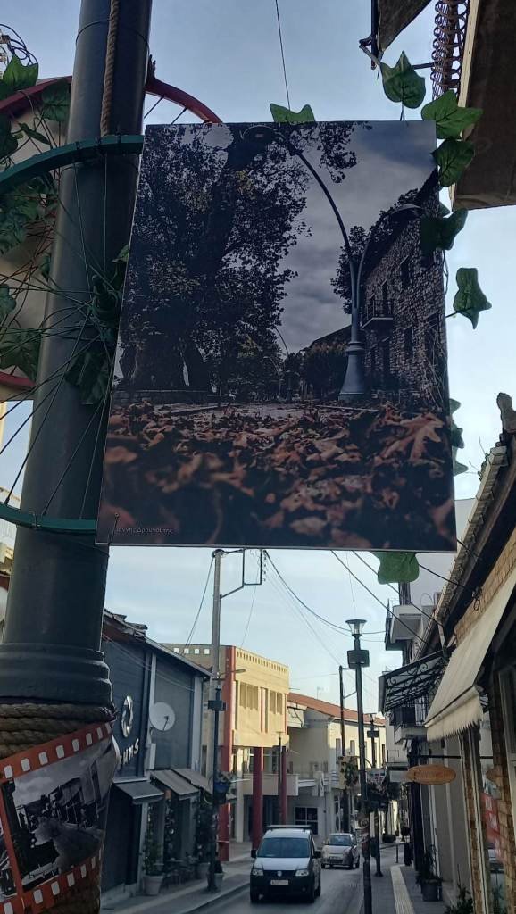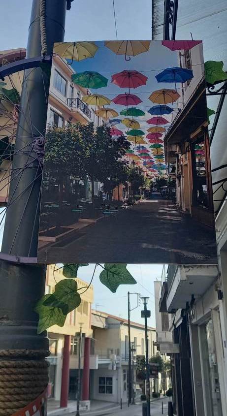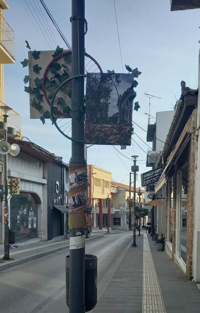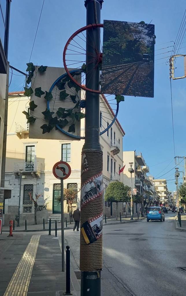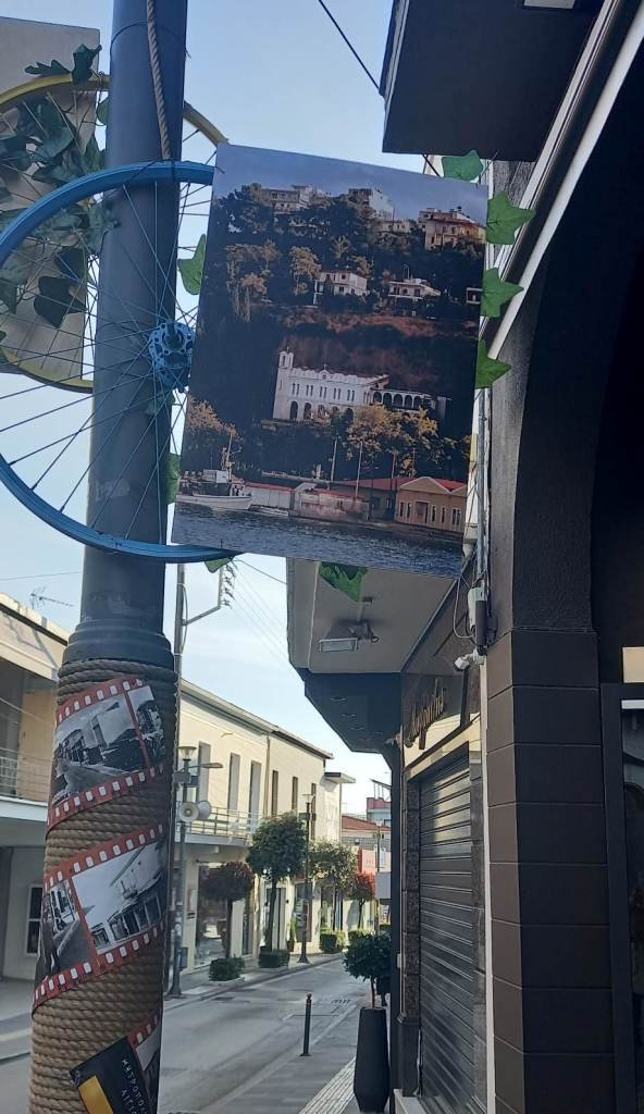 Πιο συγκεκριμένα, στολίστηκαν οι δημοτικοί στύλοι φωτισμού, από την αρχή της οδού μέχρι και το ύψος του αρχοντικού Παναγιωτόπουλου με 26 συνολικά φωτογραφίες (διαστάσεων 60Χ40cm) από το σημερινό Αίγιο, τις οποίες πρόσφερε στη Δημοτική Κοινότητα Αιγίου ο φωτογράφος Γιάννης Δρουγούτης.