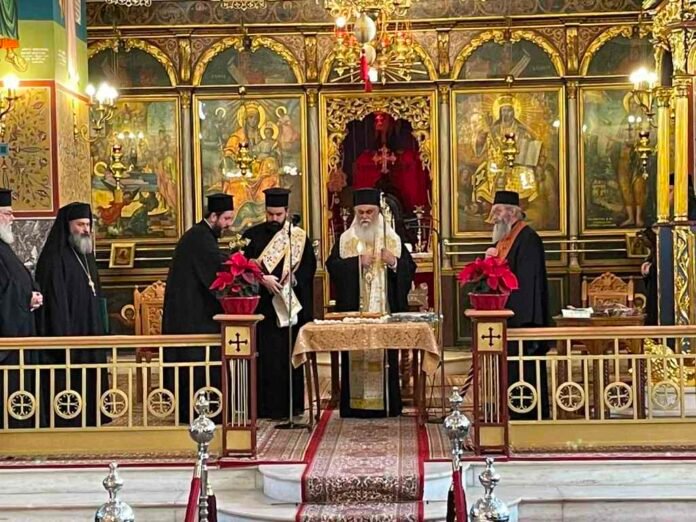 Τέλος, ο Σεβασμιώτατος μοίρασε την βασιλόπιτα στους κληρικούς, ανταλλάσσοντας με κάθε κληρικό προσωπικές ευχές.