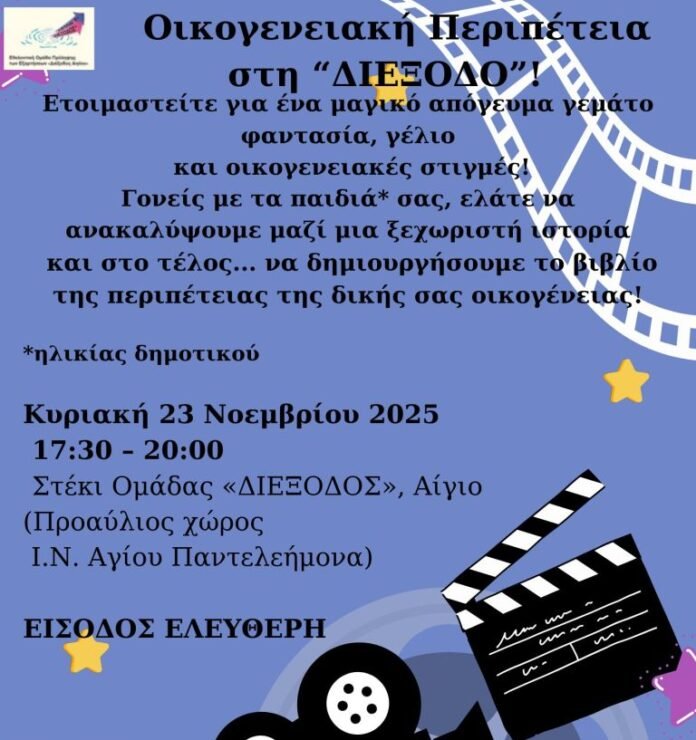 Προβολή οικογενειακής ταινίας την Κυριακή (23/11) στο Στέκι της ομάδας «Διέξοδος» Αιγίου