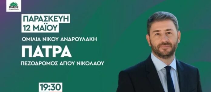 Την αχαϊκή πρωτεύουσα πρόκειται να επισκεφθεί σήμερα Παρασκευή, 12 Μαΐου, ο πρόεδρος του ΠΑΣΟΚ – ΚΙΝΑΛ Νίκος Ανδρουλάκης.