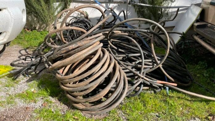 Ενώπιον του Εισαγγελέα Αιγίου οδηγήθηκαν σήμερα το πρωί δύο άνδρες οι οποίοι συνελήφθησαν χθες το απόγευμα από αστυνομικούς του Αστυνομικού Τμήματος Αιγιαλείας, στη Νέα Εθνική Οδό Πατρών – Κορίνθου, διότι ενεργώντας από κοινού με δύο συνεργούς τους που αναζητούνται, αφαίρεσαν καλώδιο χαλκού μήκους 200 μέτρων, ενώ αποπειράθηκαν να αφαιρέσουν και ένα παροχικό καλώδιο υπόγειας εγκατάστασης μήκους 200 μέτρων.
