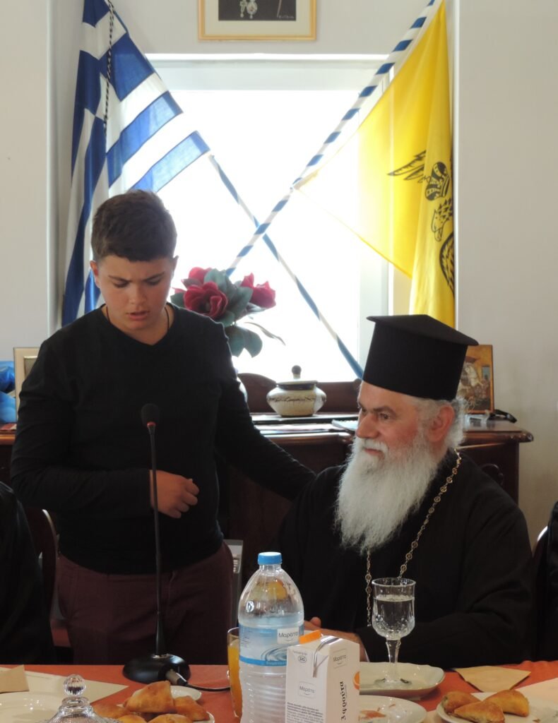Στη συνέχεια, συνομίλησε με τους Ιερόπαιδες και τους συμβούλευσε, με πατρικό ενδιαφέρον, τόσο για την προσωπική τους προκοπή όσο και για την αξία της λειτουργικής διακονίας που επιτελούν στις Ενορίες τους, αναφερόμενος μάλιστα και στη δική του προσωπική εμπειρία ως Ιερόπαις στον Ιερό Ναό Αγίου Ιωάννου Καλλιθέας Αιγίου.