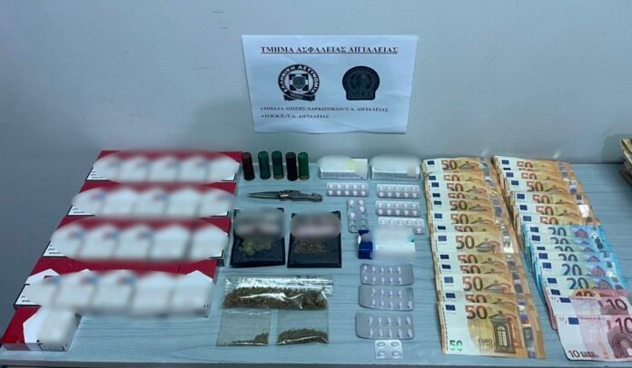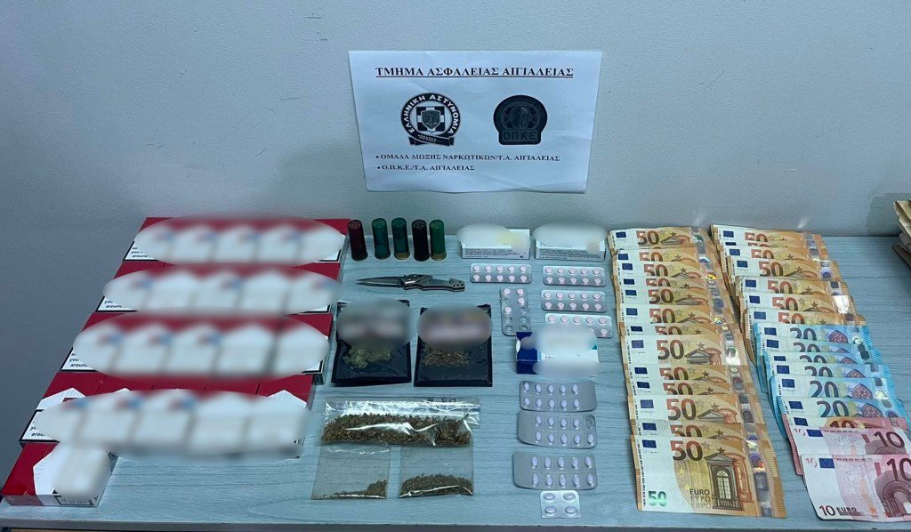 Σε έρευνα που ακολούθησε στην οικία του κατηγορούμενου οι αστυνομικοί βρήκαν και κατάσχεσαν 14,9 γραμμάρια φυτικών αποσπασμάτων κάνναβης, 77 ναρκωτικά δισκία, 5 φυσίγγια, έναν αναδιπλούμενο σουγιά, 21 πακέτα λαθραίων τσιγάρων και 1.300 ευρώ.