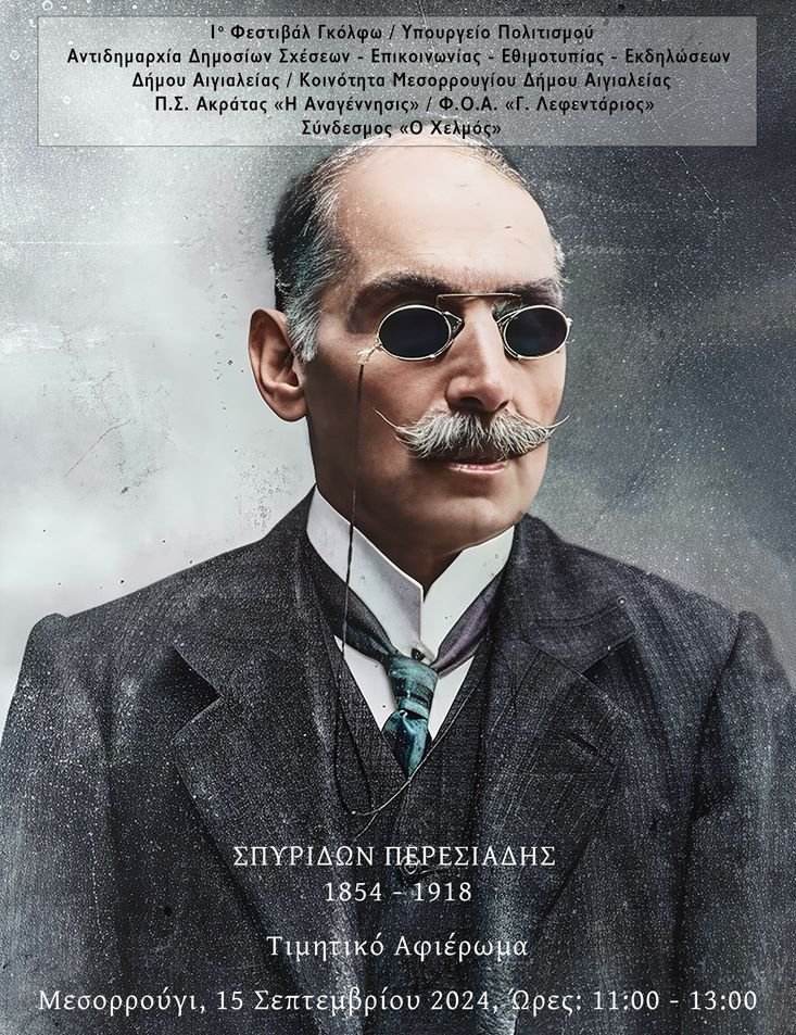 Εκατόν εβδομήντα χρόνια από τη γέννηση του Σπυρίδωνος Περεσιάδου (1854) και εκατόν τριάντα ένα από την παρουσίαση του θεατρικού έργου του «Η Γκόλφω» (Ακράτα 1893), το εναρκτήριο 1ο Φεστιβάλ Γκόλφω 2024, με τη στήριξη του Υπουργείου Πολιτισμού, τη συνεργασία της Αντιδημαρχίας Δημοσίων Σχέσεων – Επικοινωνίας – Εθιμοτυπίας – Εκδηλώσεων και τη συμμετοχή της Κοινότητας Μεσορρουγίου του Δήμου Αιγιαλείας, τιμώντας τη μνήμη του Αχαιού συγγραφέα, υλοποιεί ιερατικό μνημόσυνο και καλλιτεχνικό αφιέρωμα στον γενέθλιο τόπο του, το Μεσορρούγι, την Κυριακή 15 Σεπτεμβρίου, εκεί όπου με το έργο του κατέστησε τον Χελμό πανελλήνιο σημείο αναφοράς.