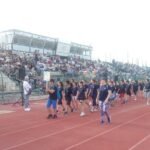 Από τις 7μ.μ. η μία κερκίδα ήταν ήδη γεμάτη από κόσμο, με 16 δημοτικά σχολεία της Αιγιάλειας να συμμετέχουν χωρισμένα σε τμήματα στα παιχνίδια και τα αγωνίσματα που ακολούθησαν μετά την παρέλαση και την ανάκρουση του Εθνικού και του Ολυμπιακού Ύμνου.