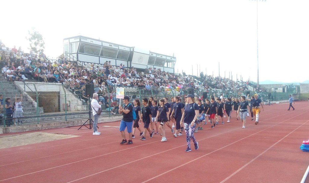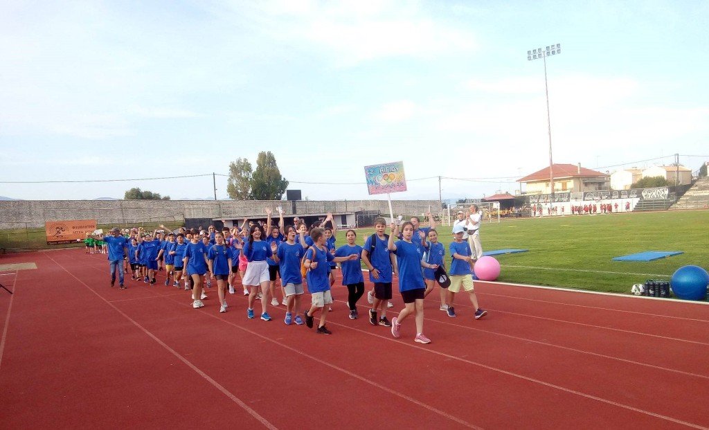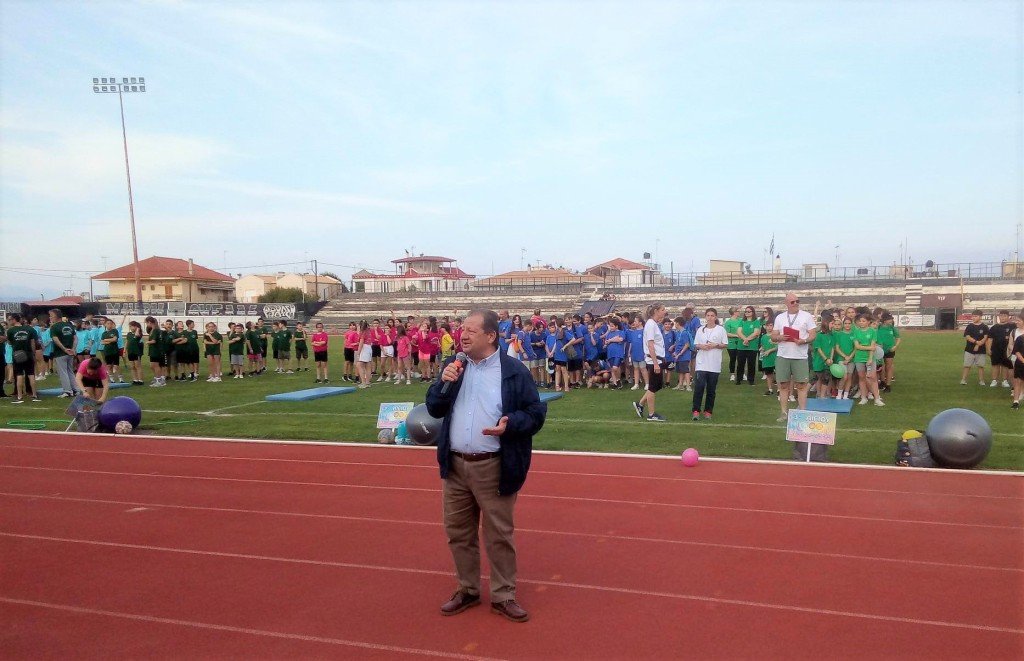 Από τις 7μ.μ. η μία κερκίδα ήταν ήδη γεμάτη από κόσμο, με 16 δημοτικά σχολεία της Αιγιάλειας να συμμετέχουν χωρισμένα σε τμήματα στα παιχνίδια και τα αγωνίσματα που ακολούθησαν μετά την παρέλαση και την ανάκρουση του Εθνικού και του Ολυμπιακού Ύμνου.