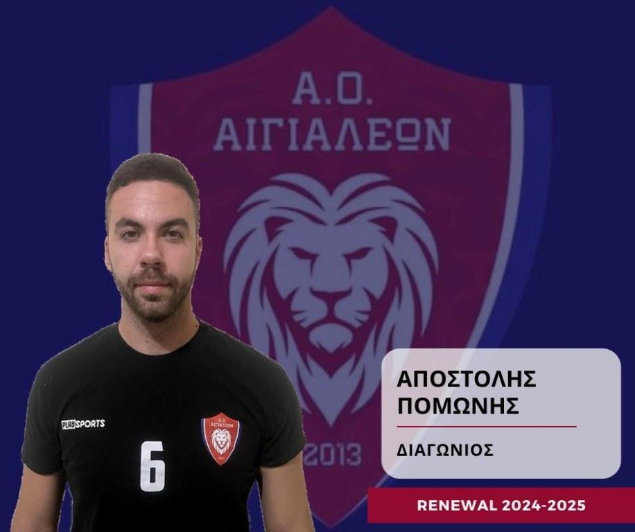O A.O. Αιγιαλέων ανακοίνωσε επίσημα την ανανέωση της συνεργασίας του με τον παίκτη για την προσεχή αγωνιστική περίοδο. Ο Πομώνης αγωνίστηκε και πέρσι στη θέση του διαγώνιου και θα στηρίξει για άλλη μια χρονιά την ομάδα.