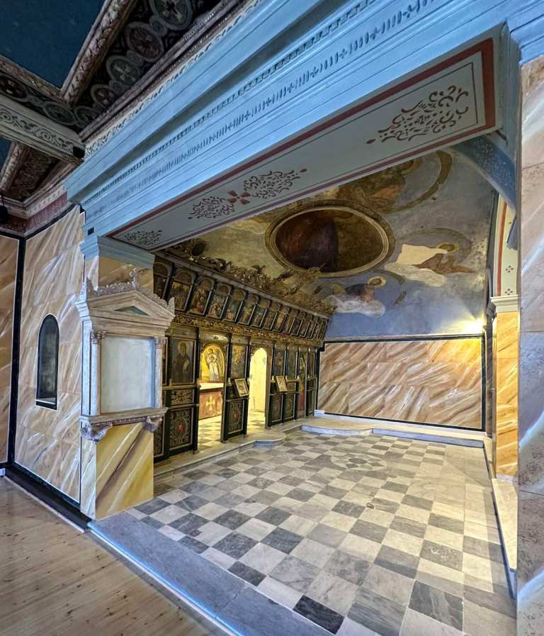 Το έργο αυτό ήταν ιδιαιτέρως σύνθετο και απαιτητικό. Έγιναν σημαντικές παρεμβάσεις στον ιστορικό Ιερό Ναό, οι οποίες περιλαμβάνουν τη συντήρηση του διακόσμου στο εσωτερικό του και συγκεκριμένα τη συντήρηση των τοιχογραφιών, των εικόνων, των γύψινων και μαρμάρινων διακοσμητικών, την εγκατάσταση ηλεκτρολογικού εξοπλισμού, φωτισμού ανάδειξης του κτηριακού συγκροτήματος, την τοποθέτηση κλιματισμού, μεγαφωνικού μηχανισμού και την επισκευή των αναλημματικών τοίχων.